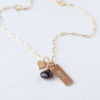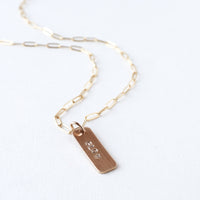 A modern, adjustable boyfriend chain featuring a rectangular tag—perfect for personalizing with initials or empowering words to tell your story. Please include your engraving details in the special comments at checkout.