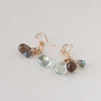 Hand-wired cluster of gemstone that elegantly simple and easy to wear. These gemstones add the perfect touch of sparkle and energy to your day. Gemstones featured labradorite, ruby, and citrine. Gemstones featured green amethyst-healing, labradorite-protection, and smokey topaz-manifestation.