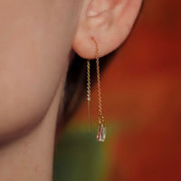 Modern single thread of chain with delicate gemstone accent, represents the continuous thread we weave in our lives. Reminding us again we are all connected through our experiences and important to the story. Find the metal and gemstone that best represents you.