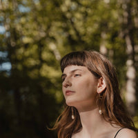 Hand-formed irregular rings, bars and acorns; combined to create a whimsical style that reminds us that we inseparable from the life of the world. These hoops serve as a gentle reminder; all we have to do is ask the plants and animals and they will teach us how to live in harmony.
