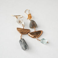 Crystals have been worn, for both their beauty and healing properties. Wearing a crystal is a powerful way to benefit from the stone's energy, especially when seeking a purpose. Wearing a crystal will increase its ability to support your intentions and assist in manifesting what you need in your life.  These bespoke earrings carry an energy. Energies present- crystal quartz-energy, citrine-happiness, rutilated quartz-unity, aquamarine-calming.