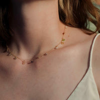 Crystals have been worn, for both their beauty and healing properties. Wearing a crystal is a powerful way to benefit from the stone's energy, especially when seeking a purpose. Wearing a crystal will increase its ability to support your intentions and assist in manifesting what you need in your life.  Bespoke unique necklace that carries an energy, energies present- labradorite-creativity, Citrine-happiness, aquamarine-calming, garnet-grounding, topaz-health and love, peridot-abundance, moonstone-connection.