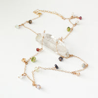 • Delicate chain with hand-wired collection of gemstone measures 16"L to 18"L