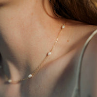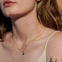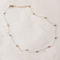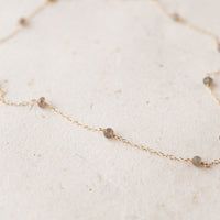 Gemstone roundel cut stones, hand-wire on delicate chain.  The delicate gemstone roundels are hand-wired intermittently within the chain to represent a flow throughout our life, remembering to stay in the present flow of our life force.