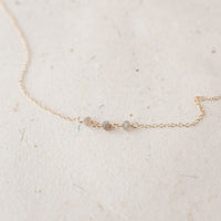 Roundel gemstones hand-wire on delicate chain.  The delicate gemstone roundels are hand-wired within the chain to represent your mind, body and spirit. Serves as a good teacher to live holistically when caring for ourselves.