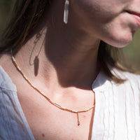 Simple and elegant, the segmented necklace is hand-strung on fine silk cord in delicate sections. Inspired by the rhythms of nature, each segment reflects the beauty of movement and connection. Lightweight and effortless, it’s perfect for everyday wear—offering a subtle reminder to stay connected to yourself and the world around you.