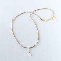 Discover the enchanting power of nature with this elegant piece, featuring Delica beads carefully threaded onto a silk cord with a sparkling Herkimer diamond. This ethereal piece captures the pure beauty of the earth, radiating light and energy with each wear. The Herkimer diamond, renowned for its unparalleled clarity and brilliance, adds a touch of enchantment, while delicate gold accents enhance its natural charm.