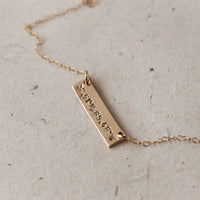Delicate oval cable chain with a solid plate for engraving meaningful words. A beautiful way to express your truth, share empowering messages, or gift heartfelt sentiments. Enter your desired text in the special comments box at checkout.