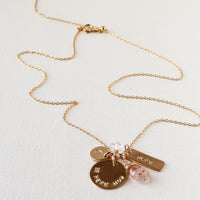 This versatile necklace is perfect for everyday wear and allows you to personalize it with stamped discs, gemstones, and keepsakes. The easy add-and-remove design lets you create a unique piece that grows with you. It includes one gemstone and disc, with the option to purchase more individually. A perfect gift for celebrating special moments or expressing your individuality. Please leave initial in comments at checkout. Not to exceed 2 characters.