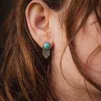 These simple turquoise studs, represents the full moon rising each cycle, the cycles of life, where the  end of one phrase becomes the beginning of another. The modern touch of gemstones make these earrings easy to wear everyday and everywhere!