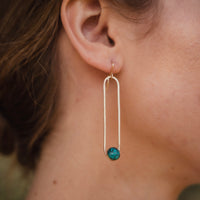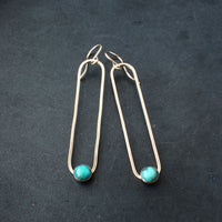 These 14k gold-filled elongated hoops with turquoise stones can be worn with any outfit and for any occasion. Turquoise enhances creativity and brings balance and spiritual grounding to the wearer.